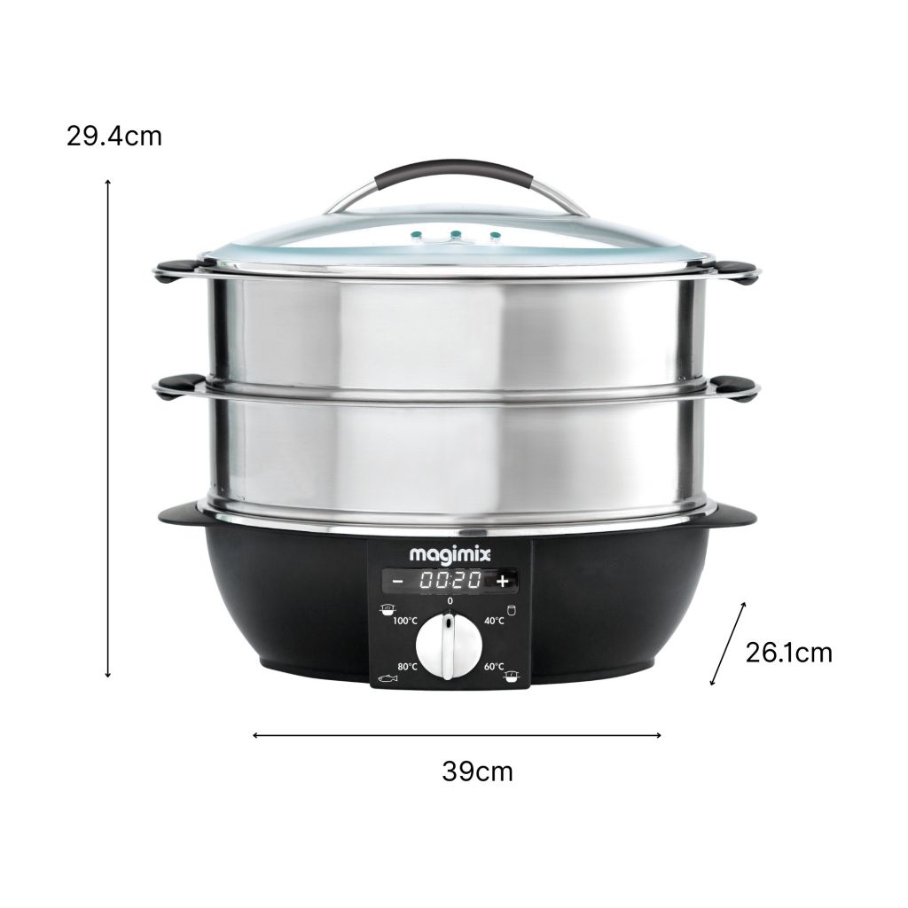 Le Magimix Cuiseur Vapeur Multifonction permet de préparer facilement des repas sains et savoureux grâce à la cuisson vapeur. Doté de deux paniers vapeur en inox et d’un couvercle en verre, il offre une grande capacité de cuisson pour préparer légumes, poissons, viandes, riz ou desserts. Ses programmes automatiques et son écran digital assurent une utilisation simple et précise au quotidien.