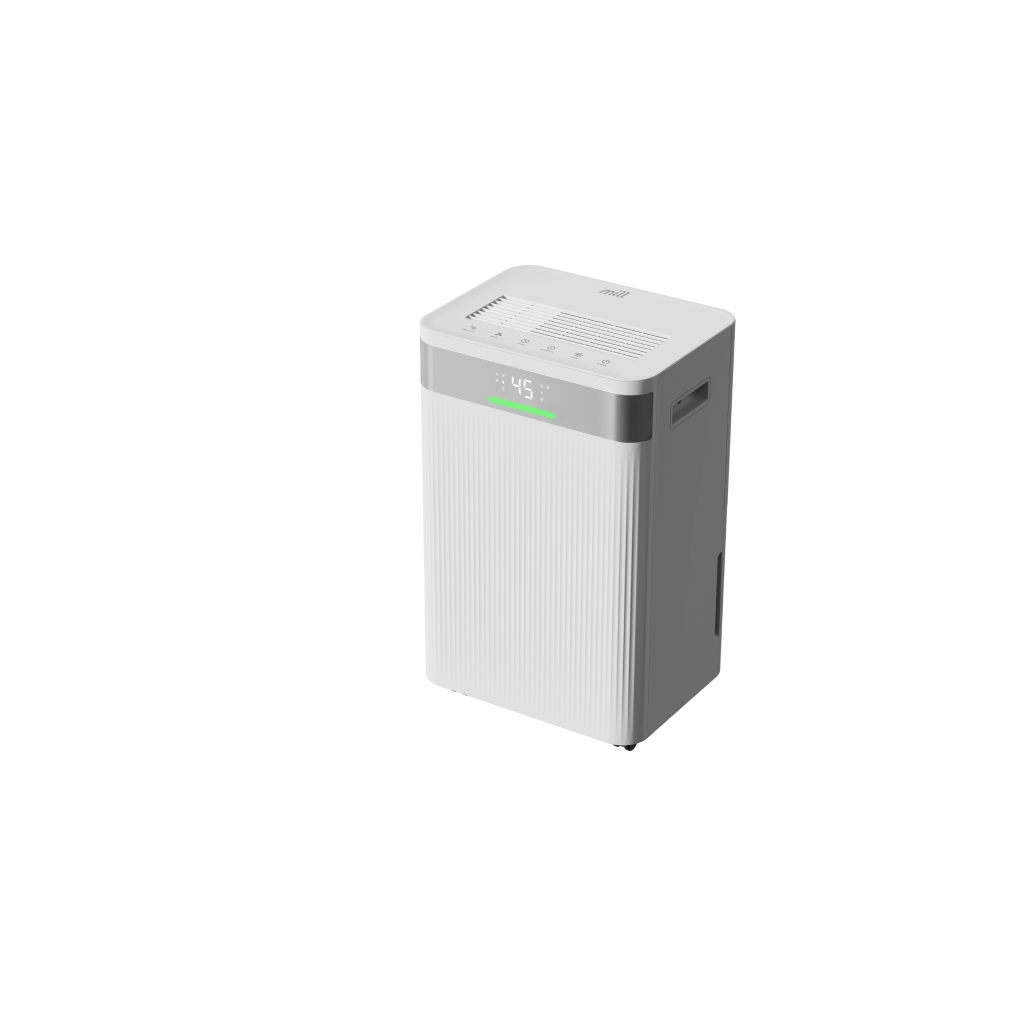 Le déshumidificateur Mill 20L MDH20F est conçu pour offrir un confort intérieur optimal dans les espaces de taille moyenne à grande. Son design scandinave épuré, à la fois discret et élégant, s’intègre naturellement dans tous les intérieurs modernes.