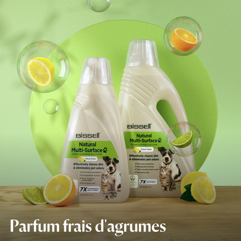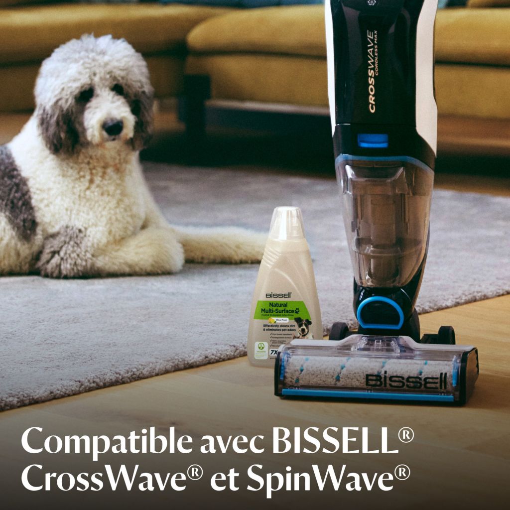 Le BISSELL Natural Multi-Surface Pet est un détergent à base d’ingrédients d’origine végétale conçu pour les appareils CrossWave, SpinWave, SpinWave Robot et HydroWave. Sa formule biodégradable élimine la saleté et les odeurs d’animaux sur sols durs et tapis. Produit vendu en lot de 6 bouteilles de 1 L.