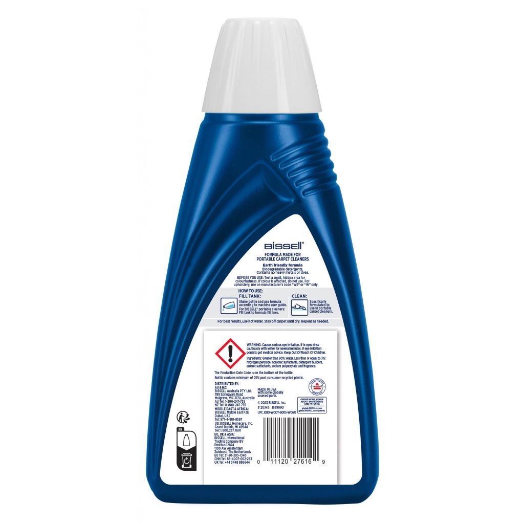 Produit vendu en lot de 6 bouteilles de 1 litre pour une utilisation régulière avec les nettoyeurs BISSELL.