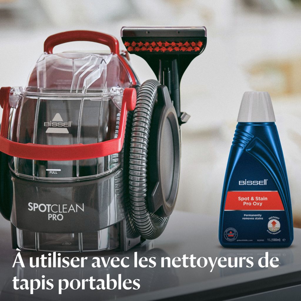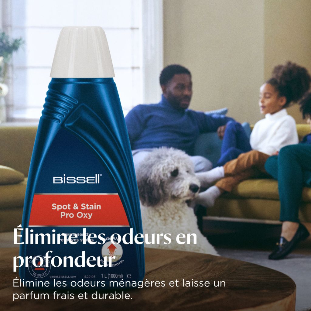 Le BISSELL Spot & Stain Pro Oxy est une solution de nettoyage compatible avec les nettoyeurs BISSELL Stain Eraser, Pet Stain Eraser, SpotClean, SpotClean ProHeat, SpotClean Pet, SpotClean C3, SpotClean Pro, SpotClean HydroSteam et MultiClean. Sa formule oxygénée élimine efficacement les taches sur tapis et tissus. Produit vendu en lot de 6 bouteilles de 1 L.